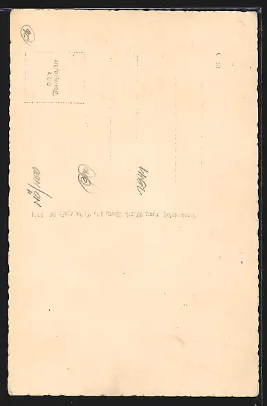 Personenbezogene Daten auf der Rückseite der Karte wurden durch blauen Textmarker unkenntlich gemacht. Die blauen Stellen sind auf die Vorderseite durchgeweicht und wirken sich negativ auf das Postkartenfoto aus
