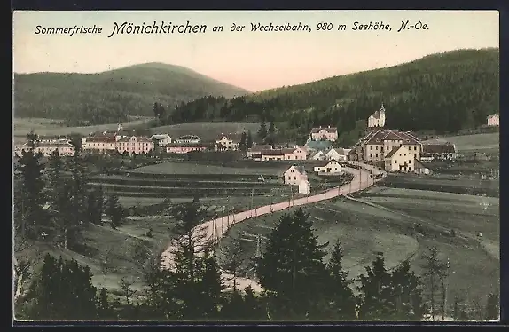 AK Mönichkirchen an der Wechselbahn, Ortsansicht aus der Vogelschau