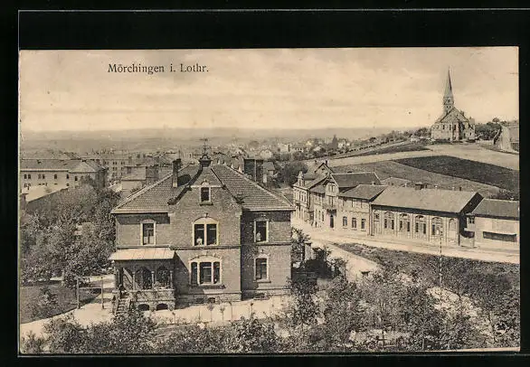 AK Mörchingen, Teilansicht mit Kirche