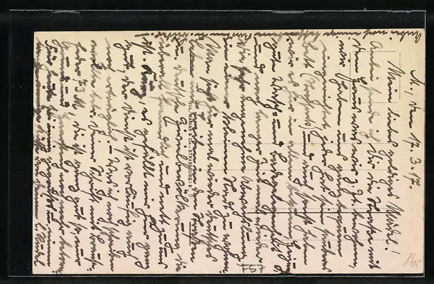 Personenbezogene Daten auf der Rückseite der Karte wurden durch blauen Textmarker unkenntlich gemacht. Die blauen Stellen sind auf die Vorderseite durchgeweicht und wirken sich negativ auf das Postkartenfoto aus