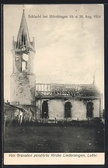 AK Mörchingen, von Granaten zerstörte Kirche Liedersingen