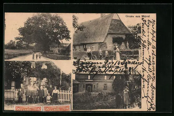 AK Mörel, Strassenpartie, Reetdachhaus, Gehöft