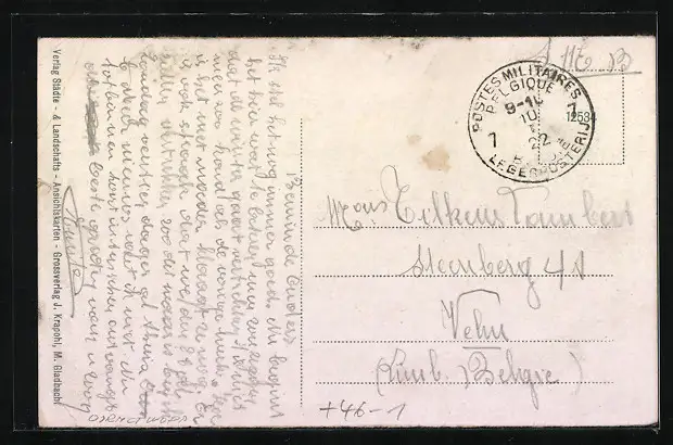 alte Ansichtskarte, gelaufen 1922, Eckknicke re., minimaler Einriss re. mittig, guter Zustand