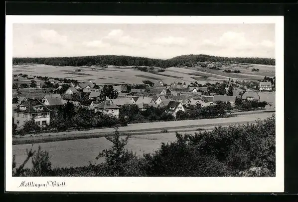 AK Möttlingen /Württ., Ortsansicht mit Feldern aus der Vogelschau