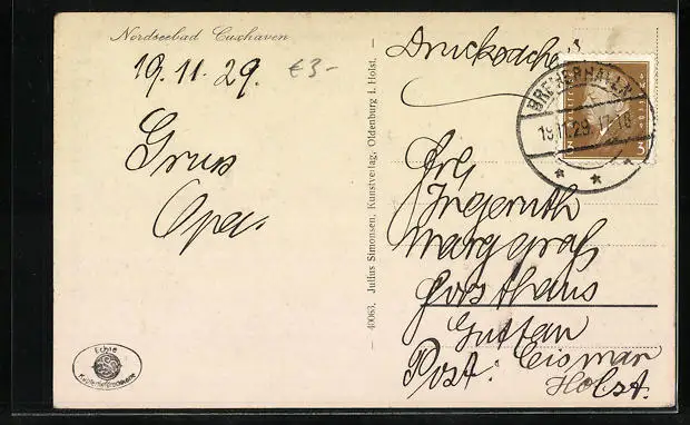 alte Ansichtskarte, gelaufen 1929, guter Zustand
