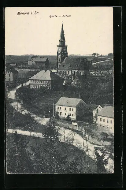 AK Mohorn i. Sa., Blick auf Kirche und Schule