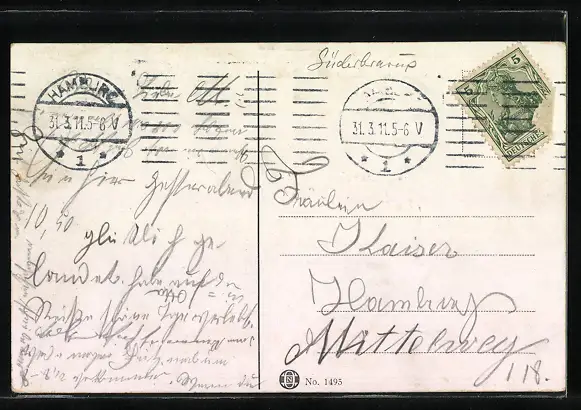 gelaufen 1911, Briefmarke entfernt, guter Zustand