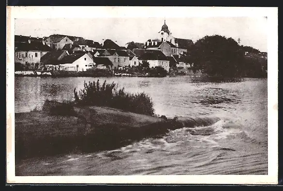 AK Moldautein, Flusspartie mit Kirchturm