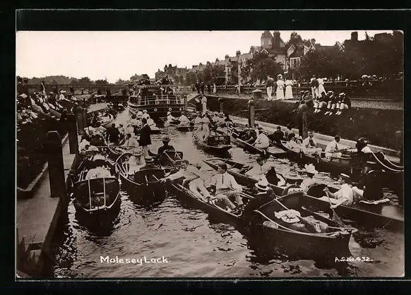 AK Molesey-Lock, Uferpartie mit Booten