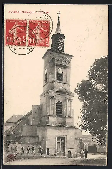AK Molesme, église avec horloge et personnes devant l`entrée