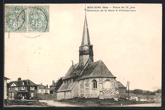 AK Moliens /Oise, Place de l`Eglise, Direction de la Gare et d`Abancourt