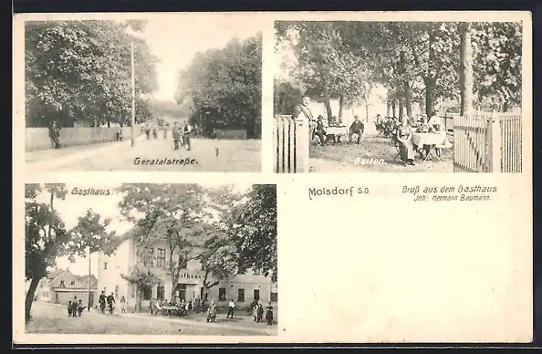 AK Molsdorf, Gasthaus mit Garten, Partie in der Geratalstrasse