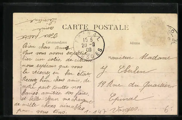 alte Ansichtskarte, gelaufen 1909, Briefmarke entfernt, rückseitig Klebe- und Papierreste, guter Zustand