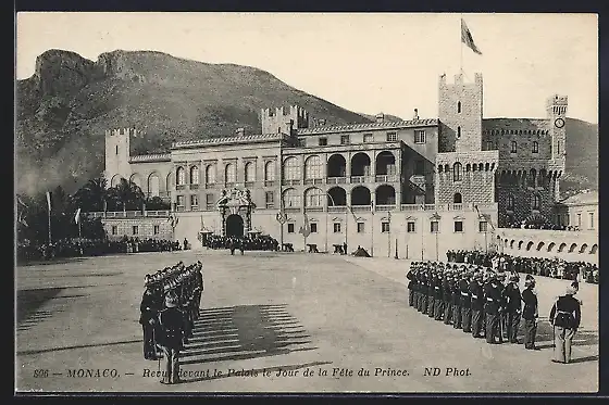 AK Monaco, Revue devant le Palais le jour de la fête du Prince