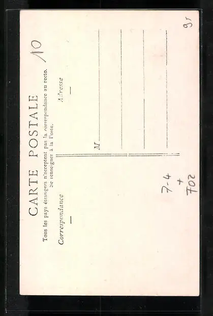 Personenbezogene Daten auf der Rückseite der Karte wurden durch blauen Textmarker unkenntlich gemacht. Die blauen Stellen sind auf die Vorderseite durchgeweicht und wirken sich negativ auf das Postkartenfoto aus