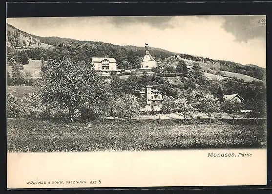 AK Mondsee, Ortspartie mit Kirche