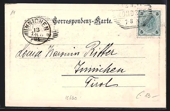 alte Ansichtskarte, gelaufen 1901, Stempelspur, guter Zustand