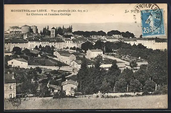 AK Monistrol-sur-Loire, Vue générale avec le château et l`ancien collège