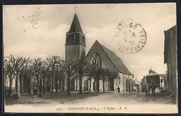 AK Monnaie, L`Église et l`Allée d`Arbres