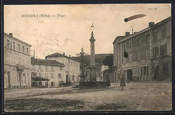 AK Monsols, Place avec fontaine et bâtiments environnants