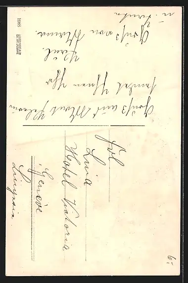 Personenbezogene Daten auf der Rückseite der Karte wurden durch blauen Textmarker unkenntlich gemacht. Die blauen Stellen sind auf die Vorderseite durchgeweicht und wirken sich negativ auf das Postkartenfoto aus