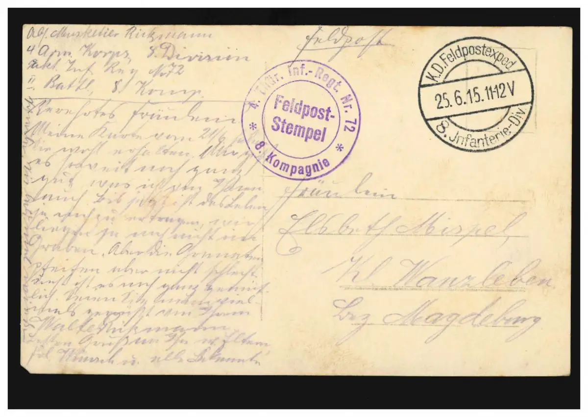 AK Mont de Lorette - La Chapella, Feldpost 4.Thüringer Inf.-Regt. 72 - 25.6.1915