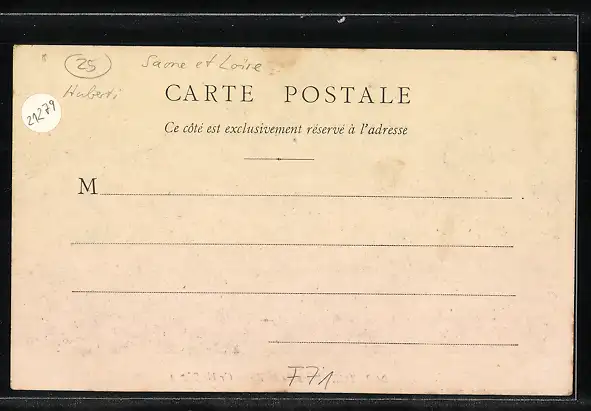 Personenbezogene Daten auf der Rückseite der Karte wurden durch blauen Textmarker unkenntlich gemacht. Die blauen Stellen sind auf die Vorderseite durchgeweicht und wirken sich negativ auf das Postkartenfoto aus