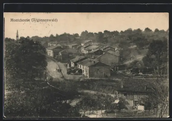 AK Montcheutin, Ortsansicht aus der Vogelschau