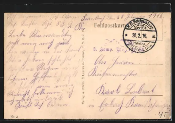 alte Ansichtskarte, gelaufen 1916, Stempelspur, guter Zustand
