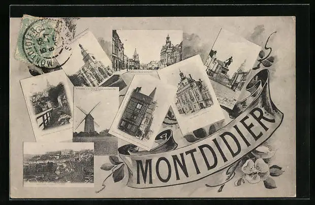 AK Montdidier, Vue générale, Le Monument, Une Rue, Le Moulin