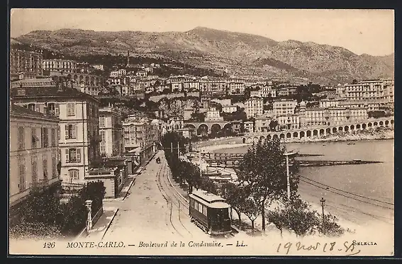 AK Monte-Carlo, Boulevard de la Condamine, Strassenbahn