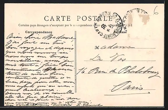 alte Ansichtskarte, gelaufen, Briefmarke entfernt, rückseitig Oberflächenschaden, guter Zustand