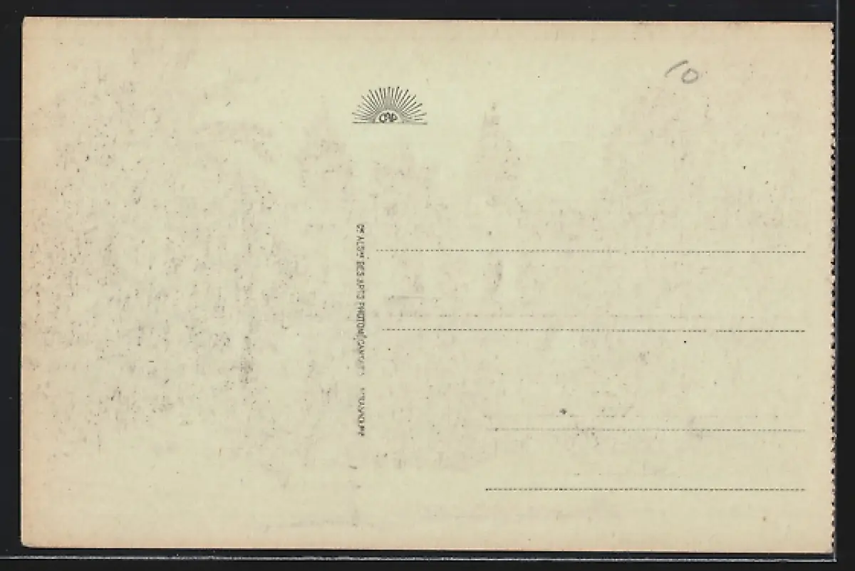 Personenbezogene Daten auf der Rückseite der Karte wurden durch blauen Textmarker unkenntlich gemacht. Die blauen Stellen sind auf die Vorderseite durchgeweicht und wirken sich negativ auf das Postkartenfoto aus