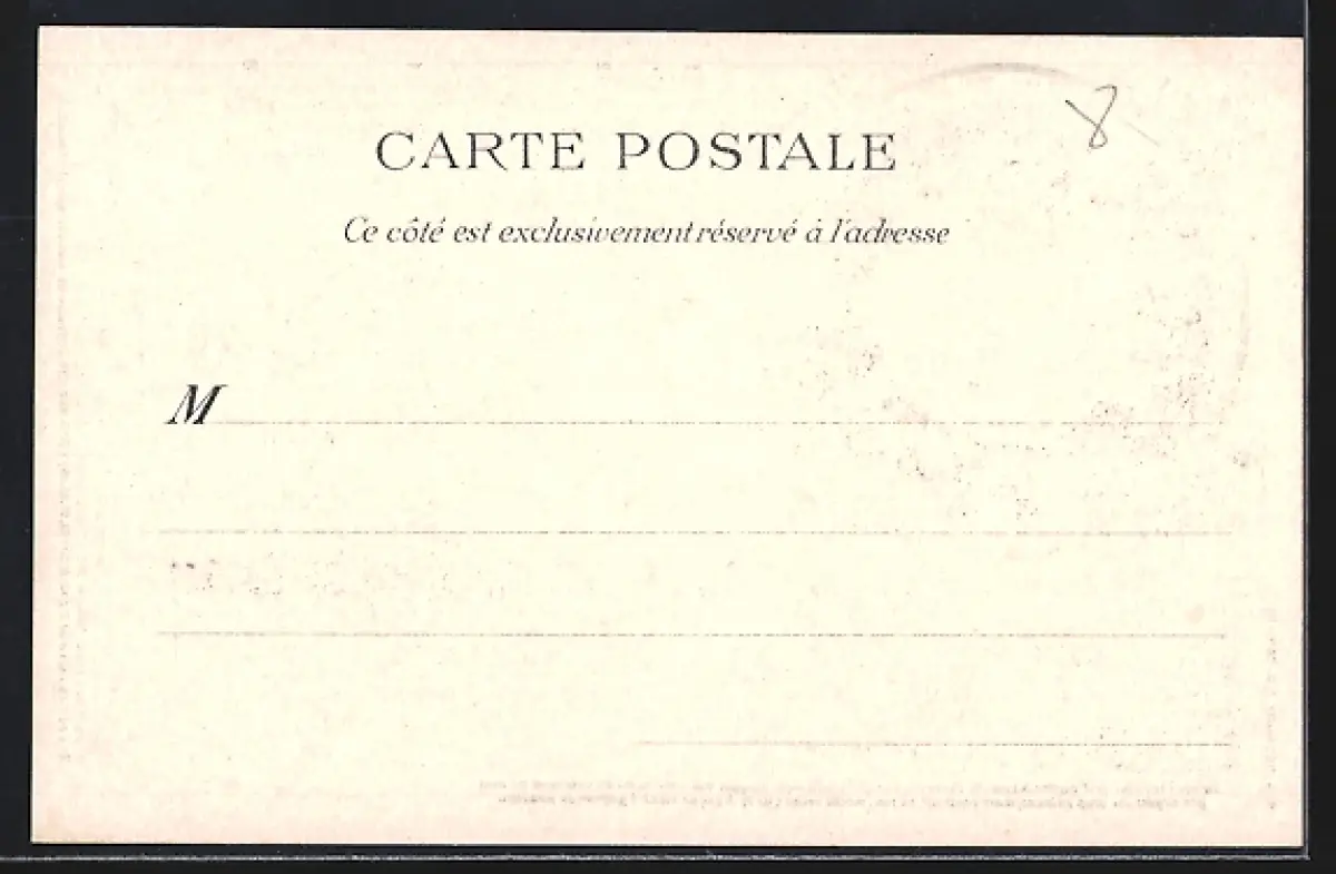 Personenbezogene Daten auf der Rückseite der Karte wurden durch blauen Textmarker unkenntlich gemacht. Die blauen Stellen sind auf die Vorderseite durchgeweicht und wirken sich negativ auf das Postkartenfoto aus