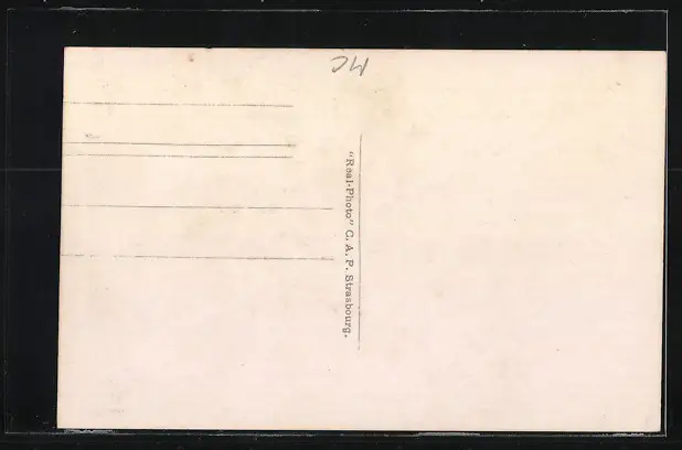 Personenbezogene Daten auf der Rückseite der Karte wurden durch blauen Textmarker unkenntlich gemacht. Die blauen Stellen sind auf die Vorderseite durchgeweicht und wirken sich negativ auf das Postkartenfoto aus