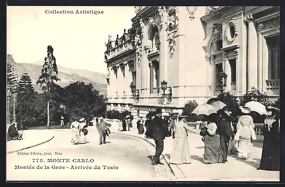 AK Monte Carlo, Montée de la Gare, Arrivée du Train