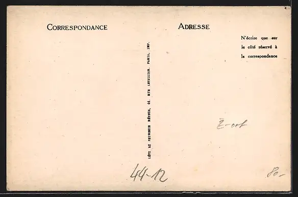 Personenbezogene Daten auf der Rückseite der Karte wurden durch blauen Textmarker unkenntlich gemacht. Die blauen Stellen sind auf die Vorderseite durchgeweicht und wirken sich negativ auf das Postkartenfoto aus
