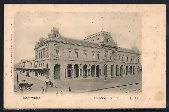 AK Montevideo, Estacion Central F. C. C. U., Bahnhof