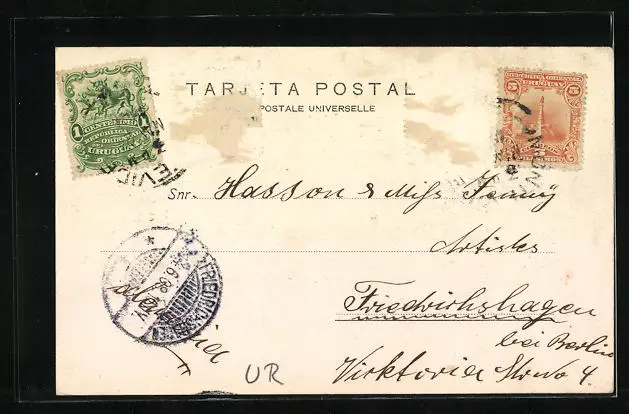 alte Ansichtskarte, gelaufen 1908, Briefmarke entfernt, rückseitig Oberflächenschaden, guter Zustand