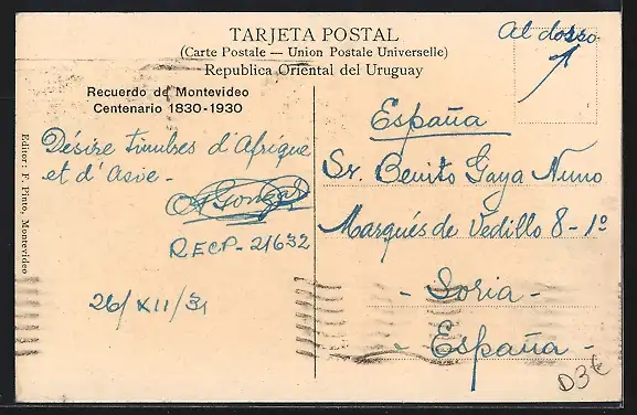 Ein Angebot in Ansichtskarten Uruguay - 658 weitere Angebote in dieser Kategorie