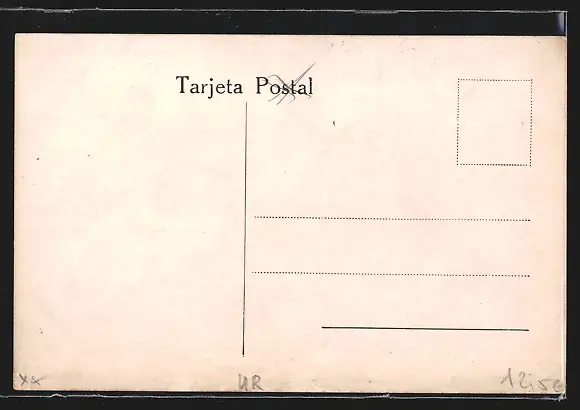 Personenbezogene Daten auf der Rückseite der Karte wurden durch blauen Textmarker unkenntlich gemacht. Die blauen Stellen sind auf die Vorderseite durchgeweicht und wirken sich negativ auf das Postkartenfoto aus