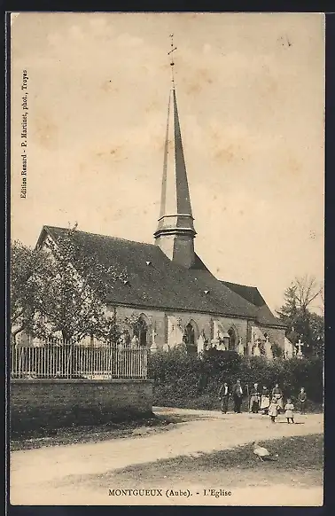 AK Montgueux, L`Église et groupe de villageois devant