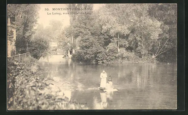 AK Montigny-sur-Loing, Le Loing, vers l`Hotel du Coq