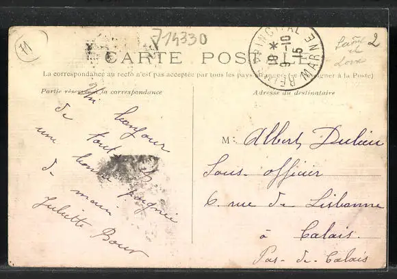 alte Ansichtskarte, gelaufen 1915 als Feldpost, leicht fleckig, Eckknick re. oben, sonst guter Zustand