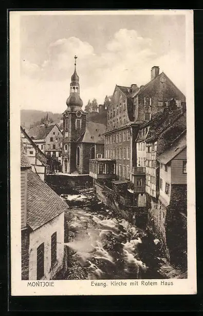 AK Montjoie, Evang. Kirche mit Rotem Haus