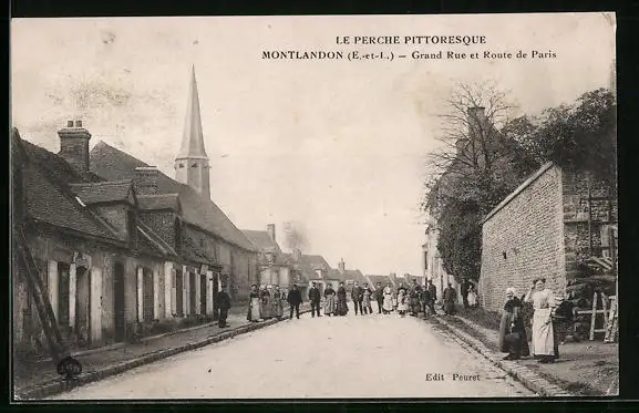 AK Montlandon, Grande Rue et Route de Paris