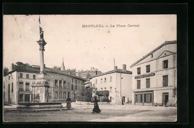 AK Montluel, La Place Carnot, J Janin Coiffeur