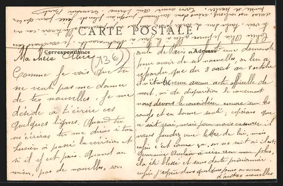 Personenbezogene Daten auf der Rückseite der Karte wurden durch blauen Textmarker unkenntlich gemacht. Die blauen Stellen sind auf die Vorderseite durchgeweicht und wirken sich negativ auf das Postkartenfoto aus