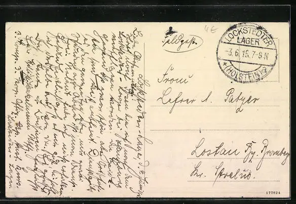gelaufen als Feldpost 1915, Eckknick re. oben, guter Zustand