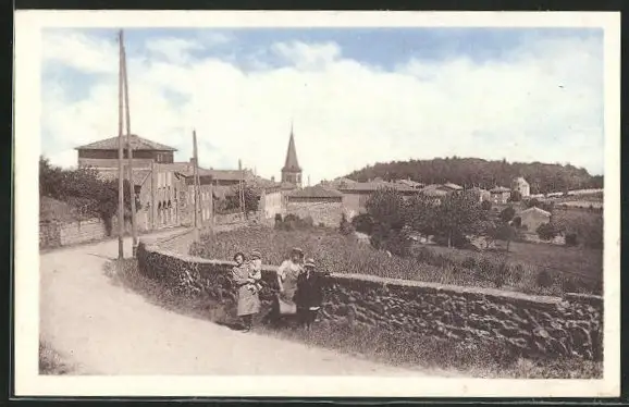 AK Montmelas, Familie auf einer Strasse am Ortseingang